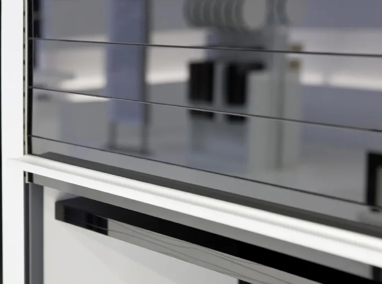 Progettati principalmente per l’ambiente cucina ma adatti anche alla zona living e altri contesti quali uffici e negozi, i sistemi a serrandina Rauvolet di Rehau sono soluzioni innovative, versatili e molto pratiche. Soluzioni contraddistinte inoltre da un’elevata e accattivante resa estetica. L’azienda tedesca permette di scegliere fra 5 linee di design; grandi consensi stanno ottenendo le serrandine Rauvolet Vetro-Line e Rauvolet Metallic-Line. Le prime si caratterizzano per una larghezza ridotta delle guide e per le pregiate lamelle in vetro temperato con finitura opaca, resistenti ai carichi e ai graffi, che creano superfici frontali “flat”, valorizzando l’ambiente con riflessi di luce e trasparenze. Il sistema effetto vetro Rauvolet Vetro-Line è disponibile nelle versioni a scorrimento sul retro e sistema a cassetta e in diversi colori. Il sistema a serrandina Rauvolet Metallic-Line coniuga invece i vantaggi dei polimeri con un’estetica essenziale: il discreto effetto metallo e le guide sottili si inquadrano perfettamente nel minimalismo tanto in voga in questo periodo. Disponibili nella finitura alluminio e in acciaio spazzolato, i listelli Rauvolet Metallic-Line sono disponibili in 3 diverse altezze: 20, 25 e 50 mm. Come tutte le soluzioni a serrandina Rehau, anche questa è dotata di un meccanismo di bilanciamento che rende lo scorrimento verticale agevole e silenzioso, senza necessità di esercitare particolare forza.
